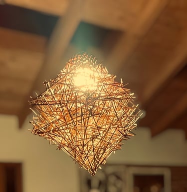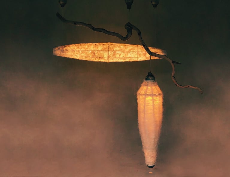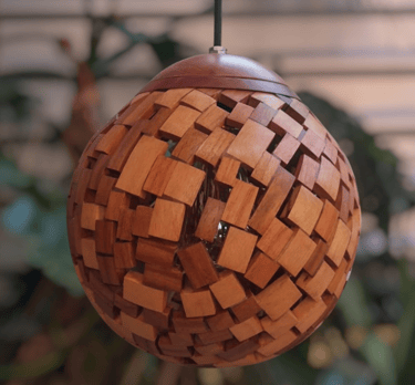 Lámpara de madera de madroño. Mención honorífica en Inédito 2023. En colaboración con Fibra Hermanos Maguey.