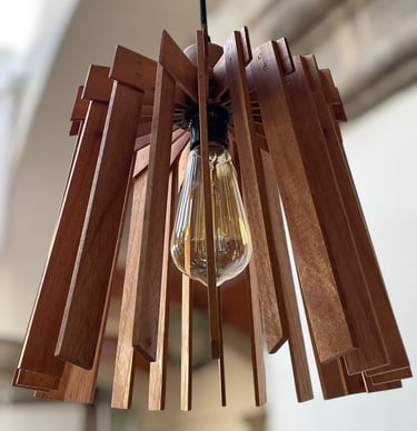 Lámpara de madera de chicozapote y cedro.