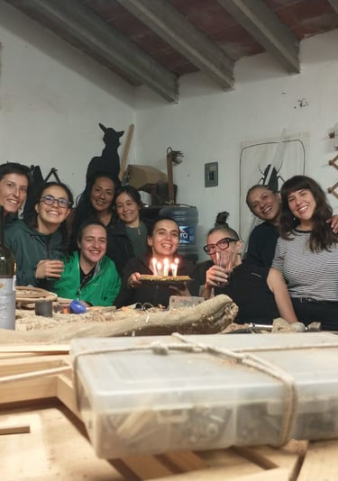Desde sus inicios MadmeT nace con la idea de cooperar y trabajar juntas, de hacer un equipo de mujeres y disidencias para crecer en el oficio, intercambiar saberes, ideas y herramientas. Para buscar un rincón seguro donde producir y crear con el tiempo y el cuidado que merecemos.